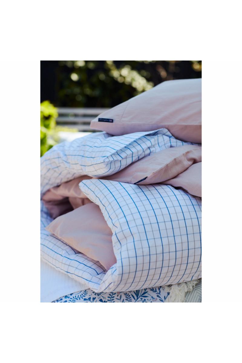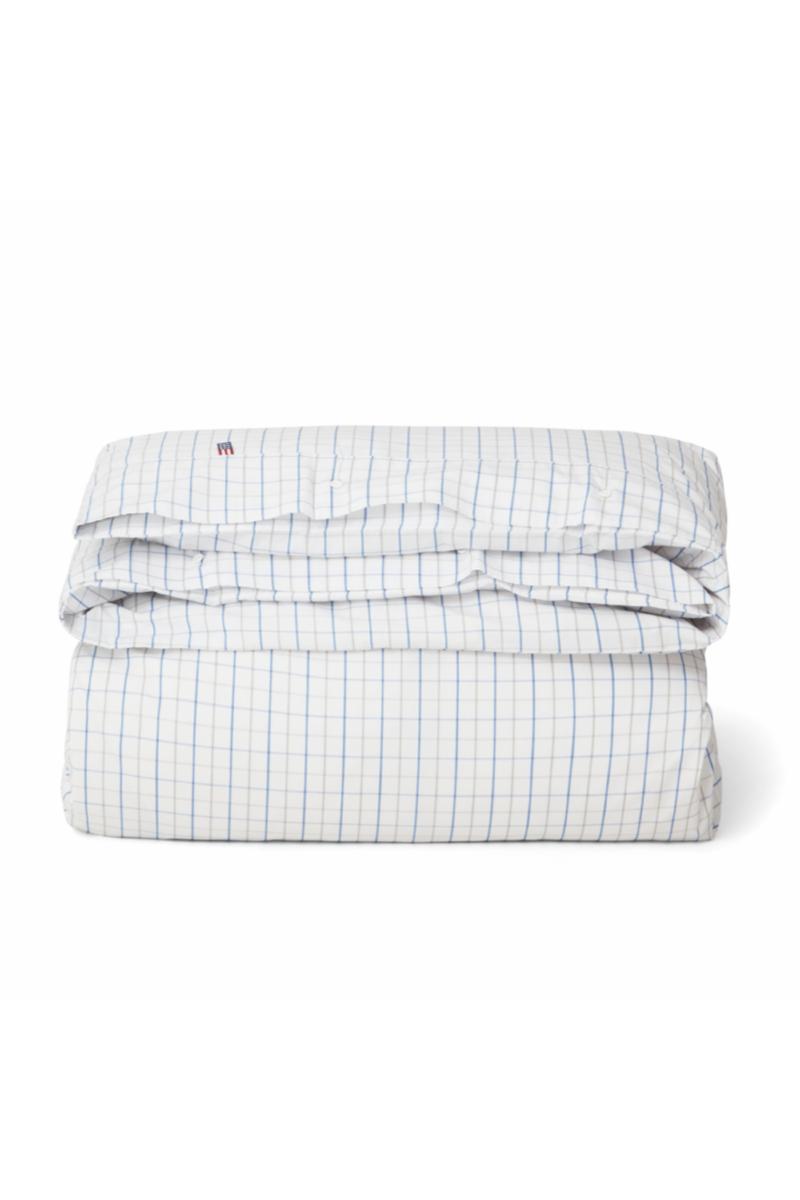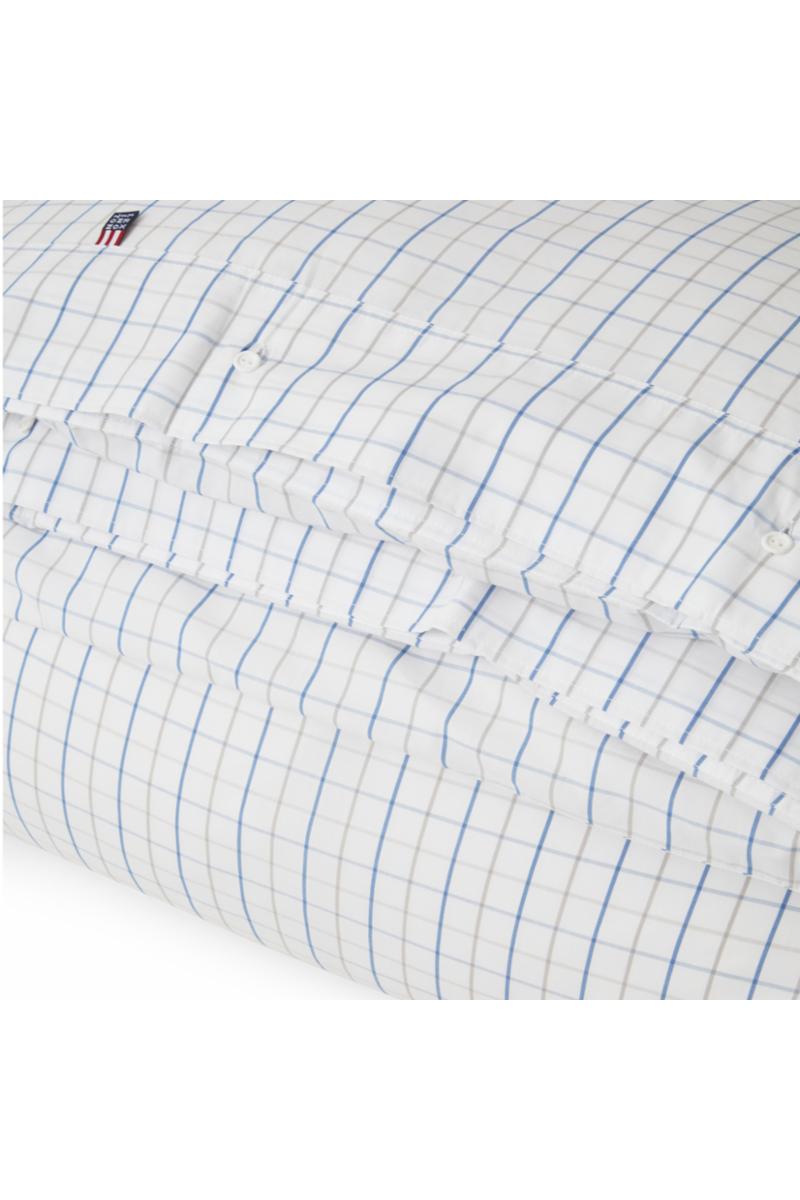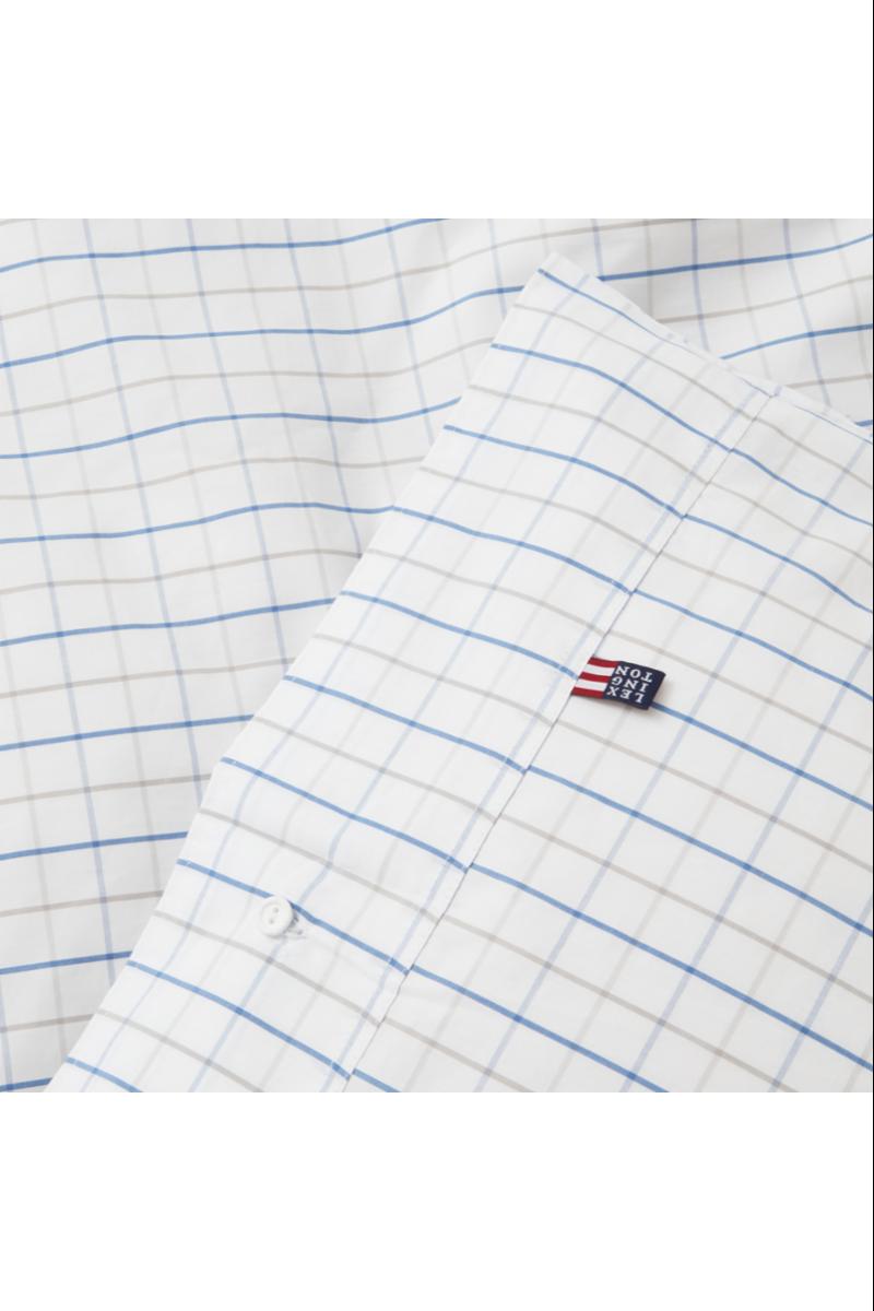 Få en god natts søvn med vårt svale dynetrekk i rutet bomullspoplin! Med rutemønster i hvitt, blått og grått får soverommet en klassisk touch, og doble stikninger, logoknapper i gummi og flaggmerke utstråler ekte Lexington-stil. Ekstra bonus? Poplin er et pustende, krøllfritt og lettstelt materiale, og OEKO-TEX®-sertifisering betyr at produktet ikke inneholder skadelige kjemikalier.