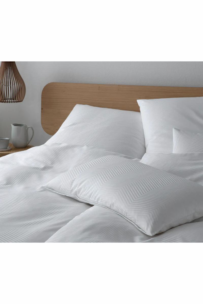 «Canova» er en klassiker på soverommet med de jacquardvevde fiskebeinstripene. Det elegante sateng-sengetøyet laget av den fineste bomull er behagelig å ta på.